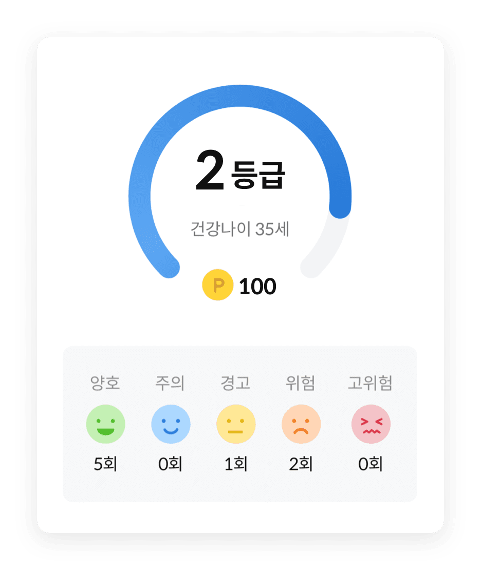 건강검진과 의료 내역, 걸음 수를 기반으로 건강 나이와 등급이 산출돼요